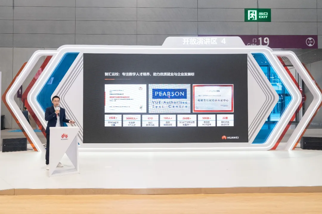 随着ICT产业的快速开展,行业对高素质人才的需求日益迫切,职业认证培训作为连接教育与产业的重要桥梁,正发挥着越来越关键的作用。在大会开放演讲环节,bbin宝盈集团官网技术认证培训业务部经理周亚军以《智汇云校-华为职业认证培训》为题,分享了公司在华为认证培训体系中的丰富经验与特色课程,并介绍了相关就业服务、成功案例,展现了校企协同育人模式在提升学员就业竞争力方面的显著成效。